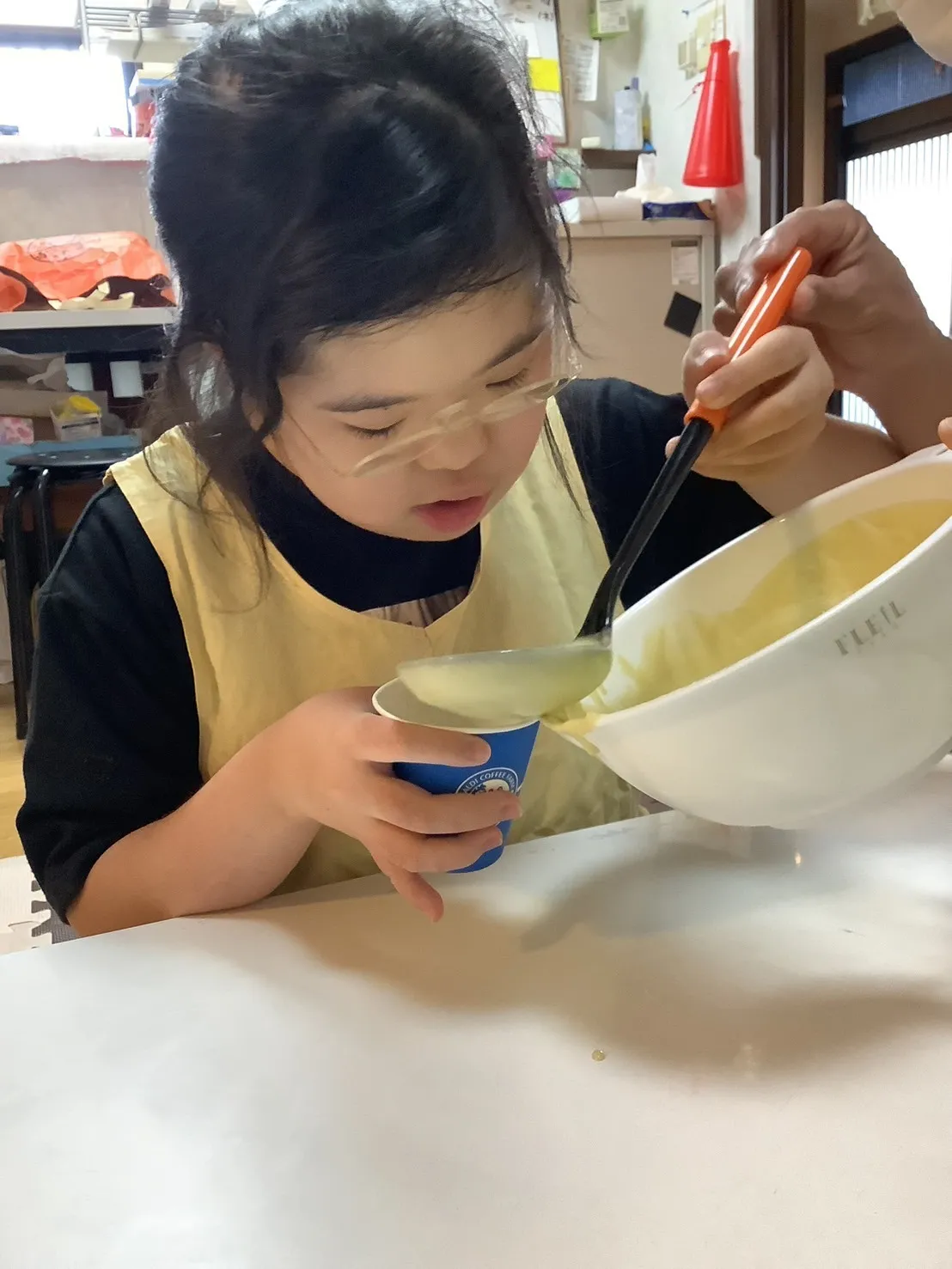 紙コップに生地を入れ、電子レンジでチン✨